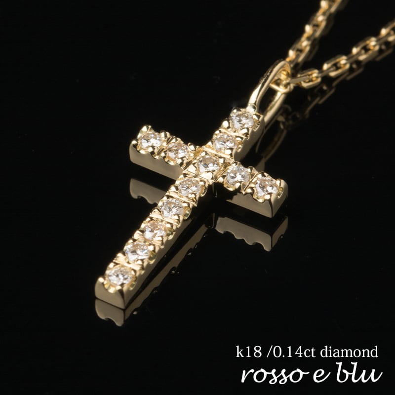 k18 18金 ゴールド 十字架 クロス ネックレス 18k ダイヤモンド 0.14ct レディース 40cm 45cm