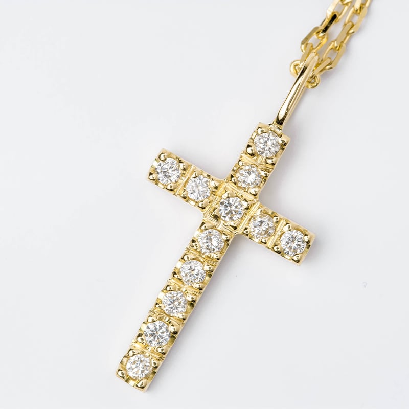 クロスにセットしているのは 輝きのきれいな12石のSIクラスダイヤ(合計0.14ct)